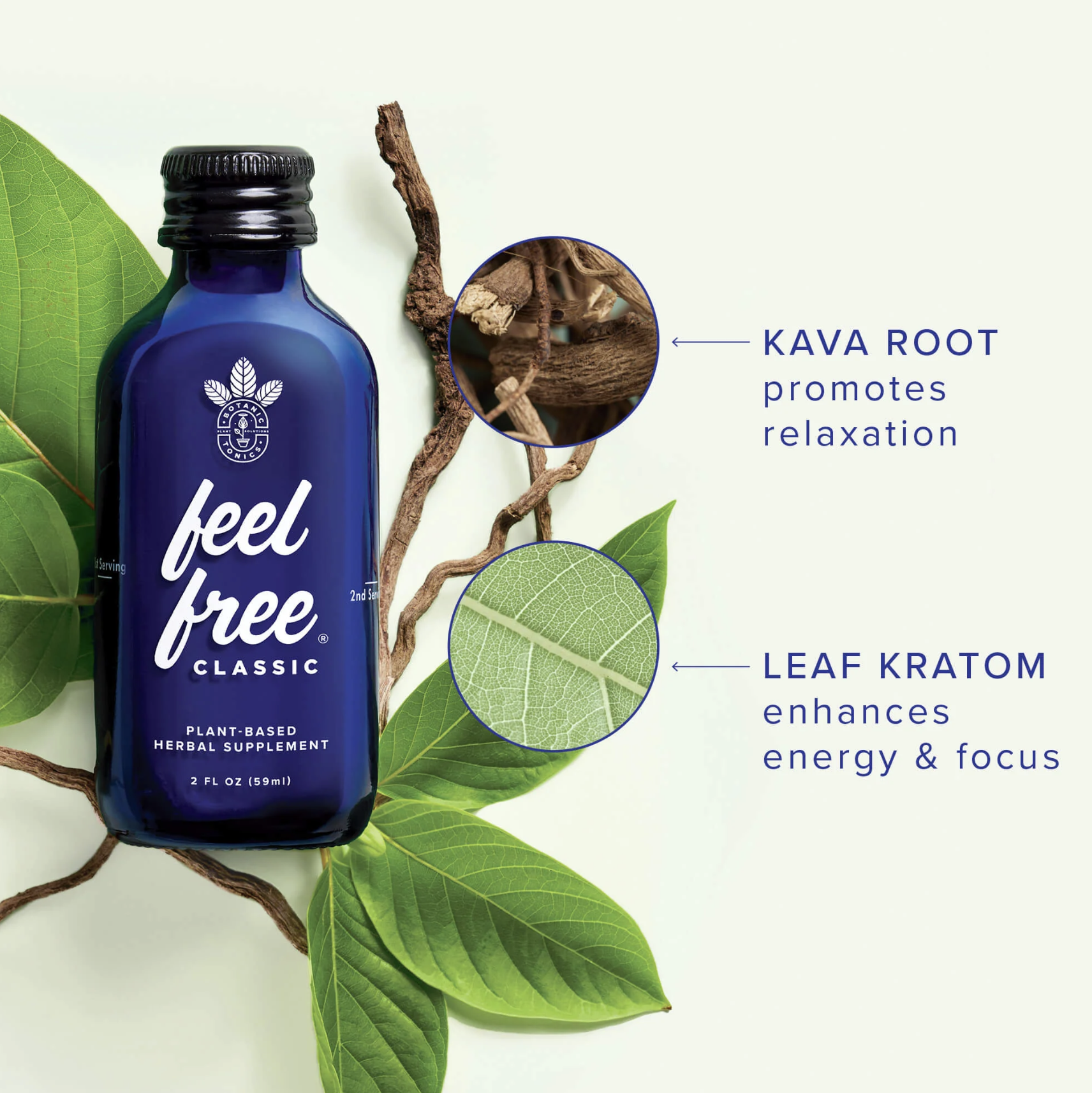 Botanic Tonic's Feel Free is a blend of natural ingredients like kava and Kratom, designed to help users: